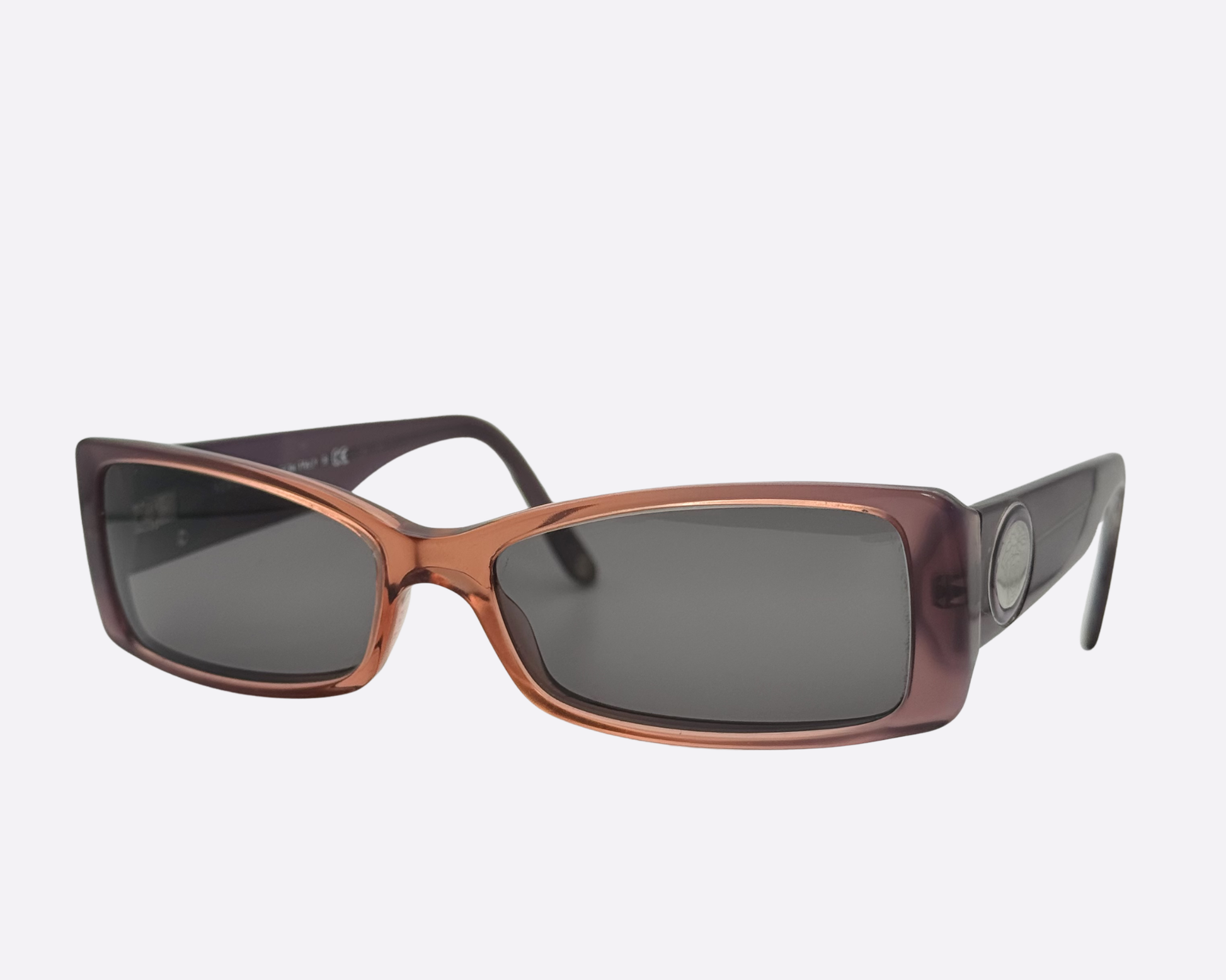 Step into the Y2K era with these authentic Versace 3117 frames. This model perfectly captures the transition from late 90s minimalism to the bold, logo-centric glamor of the early 2000s. With its sleek rectangular profile and unique translucent finish, it’s a versatile piece of Italian eyewear history.
