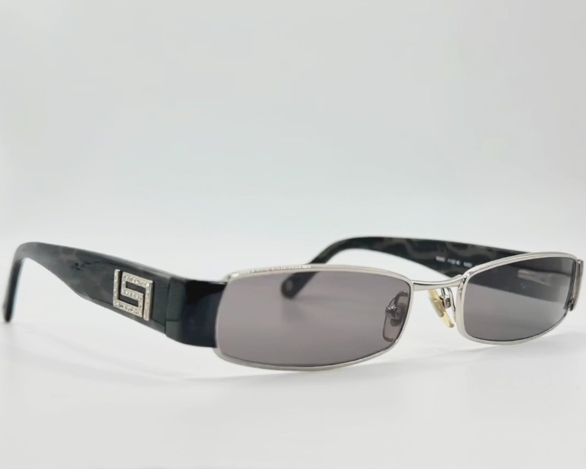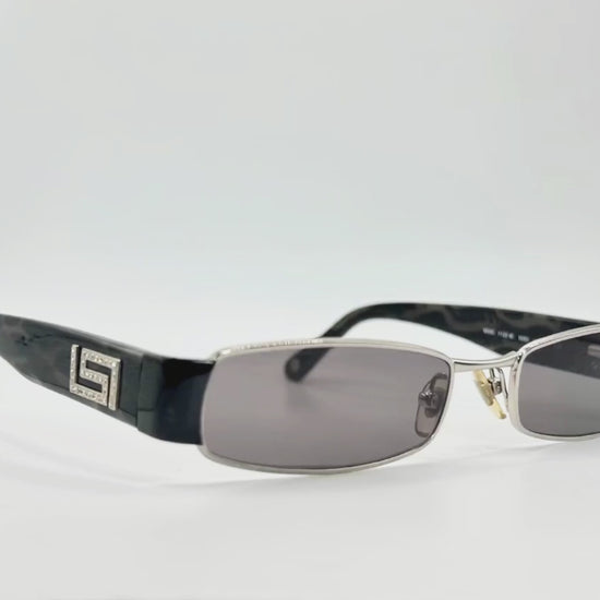 Kliv in i det tidiga 2000-talets modevärld med dessa fantastiska Versace-solglasögon. Tillverkade i Italien, är detta par en mästerklass i den eleganta, rektangulära "Matrix-estetiken" som definierade Y2K-eran, kombinerat med Versaces kompromisslösa lyx.